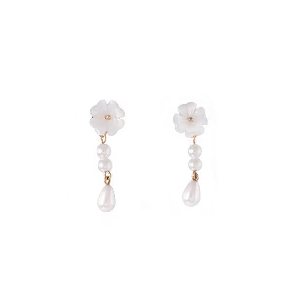 گوشواره میخی با آویز گل صدفی