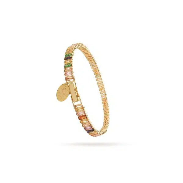 دستبند طلا تنیسی با آویز پلاک حک برگ