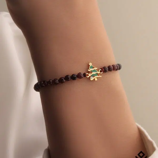 دستبند طلا سنگی با پلاک درخت کریسمس میناکاری