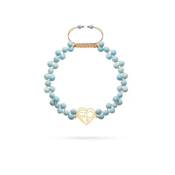 دستبند طلا سنگی با پلاک قلب خانواده