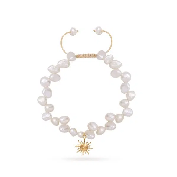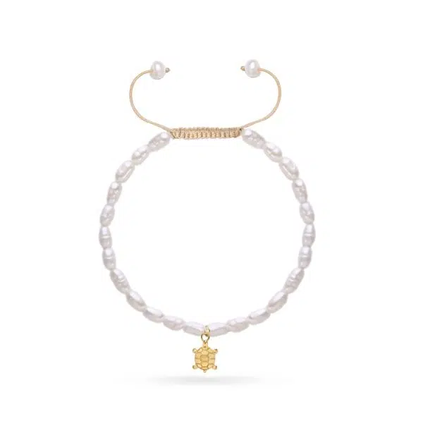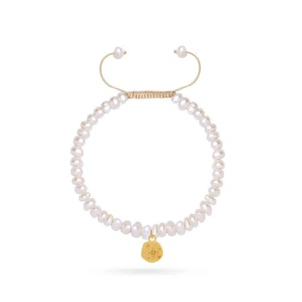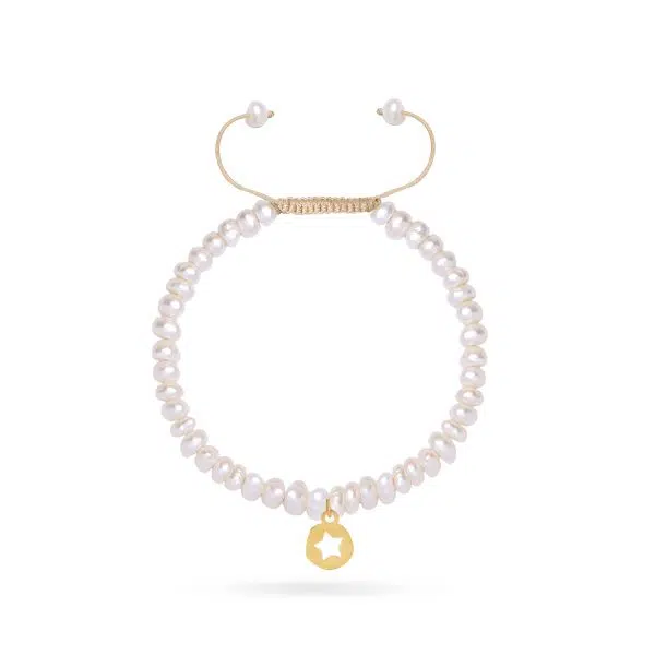 دستبند طلا و مروارید با پلاک ستاره دریایی