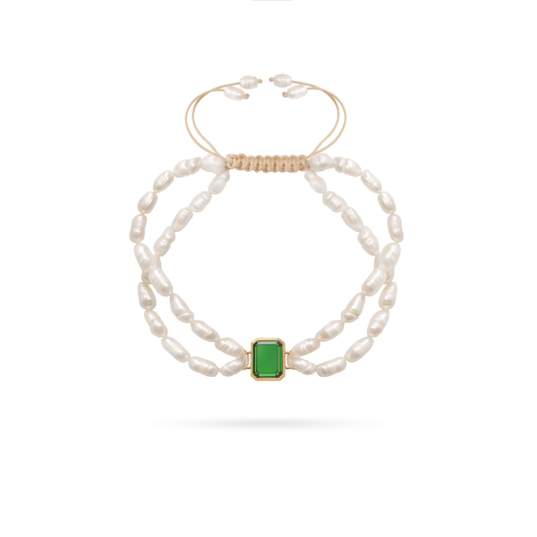 دستبند مروارید با سنگ سبز