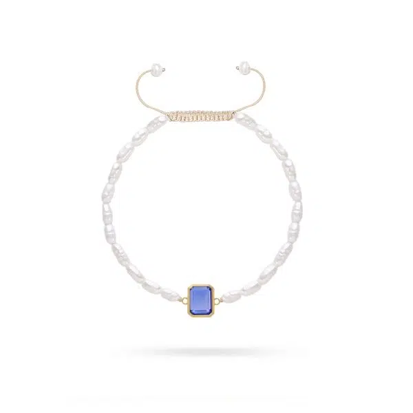 دستبند مروارید با سنگ آبی