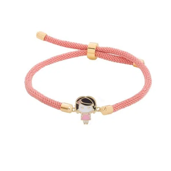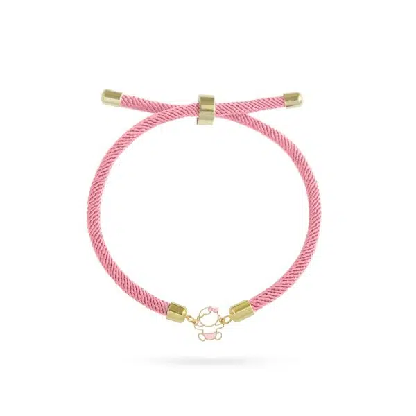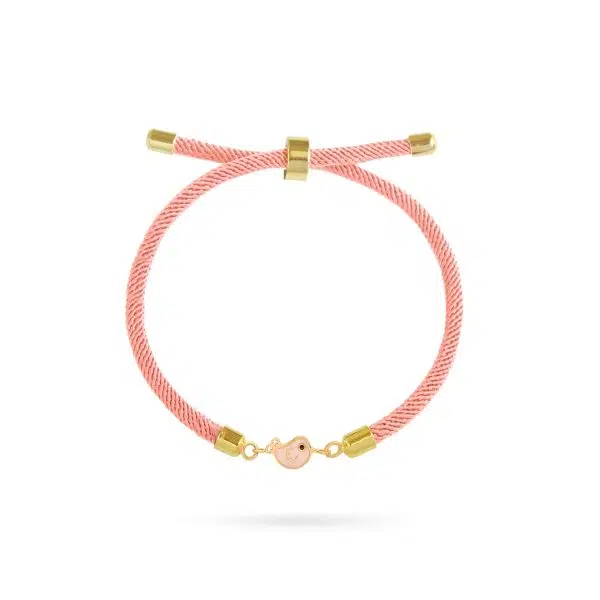 دستبند طلا بنددار پرنده صورتی میناکاری