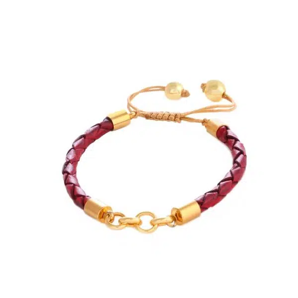 دستبند طلا و چرم هرمس