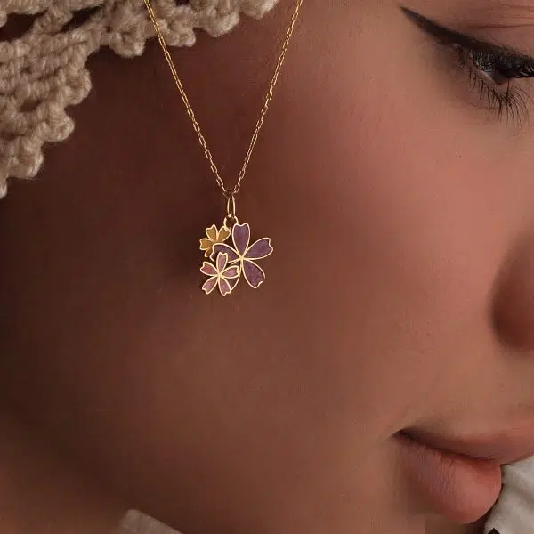 آویزطلا دو گل میناکاری