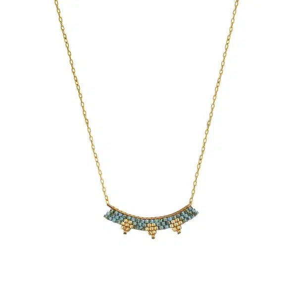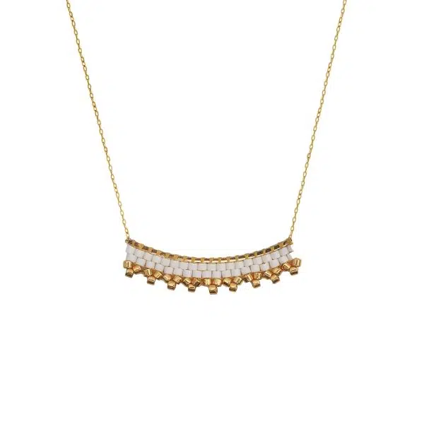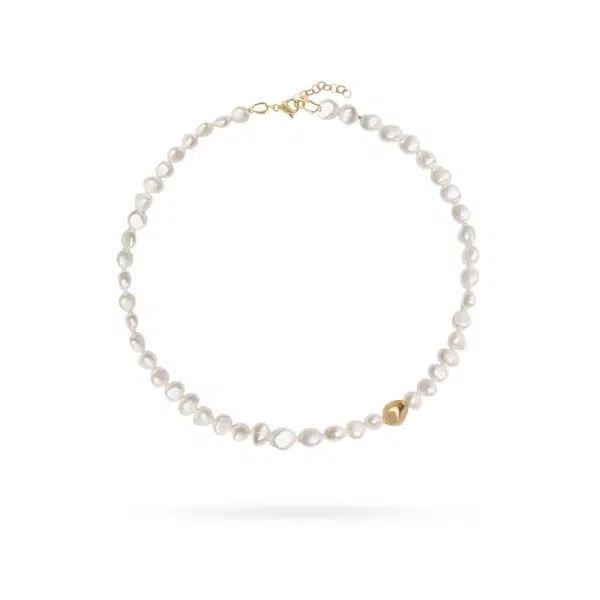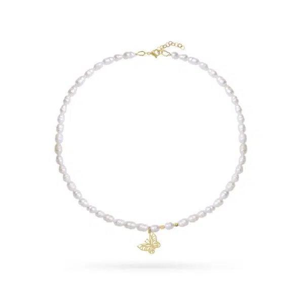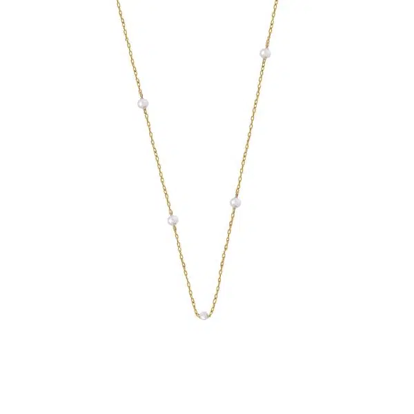 گردنبند طلا و مروارید با آویز حرف H نگین دار
