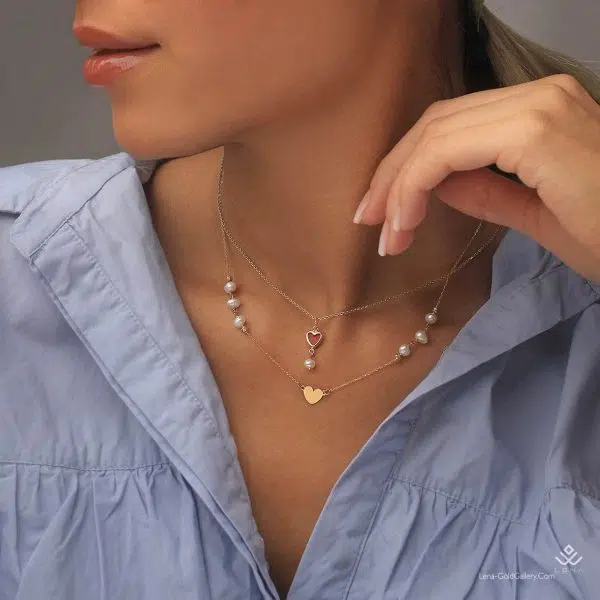 گردنبند طلا قلب ساده و مروارید
