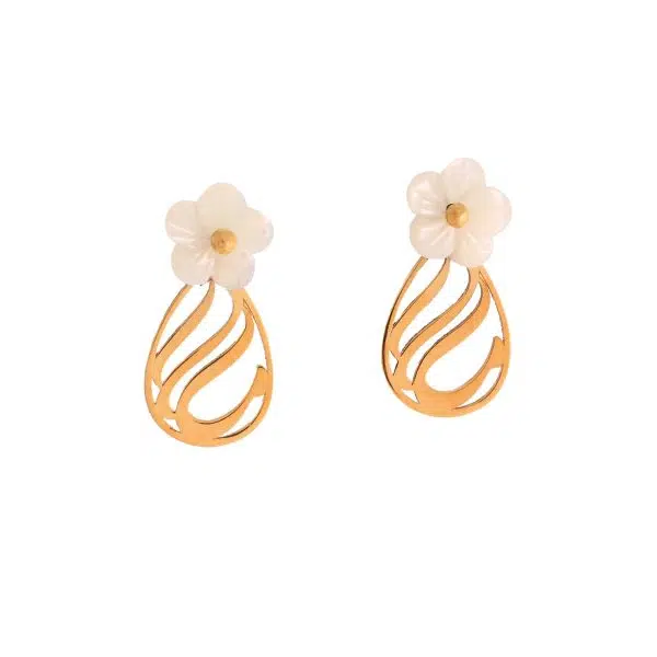 گوشواره طلا میخی قلب پروانه با مروارید اشکی