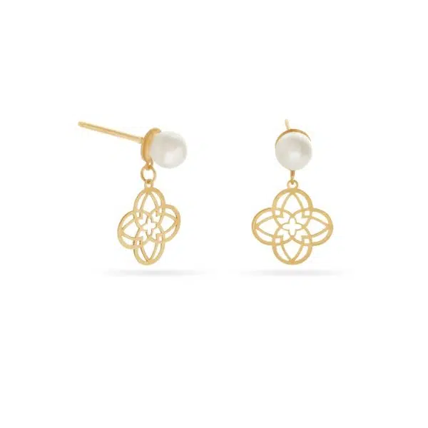 گوشواره طلا میخی ونکیلیف اسلیمی با مروارید