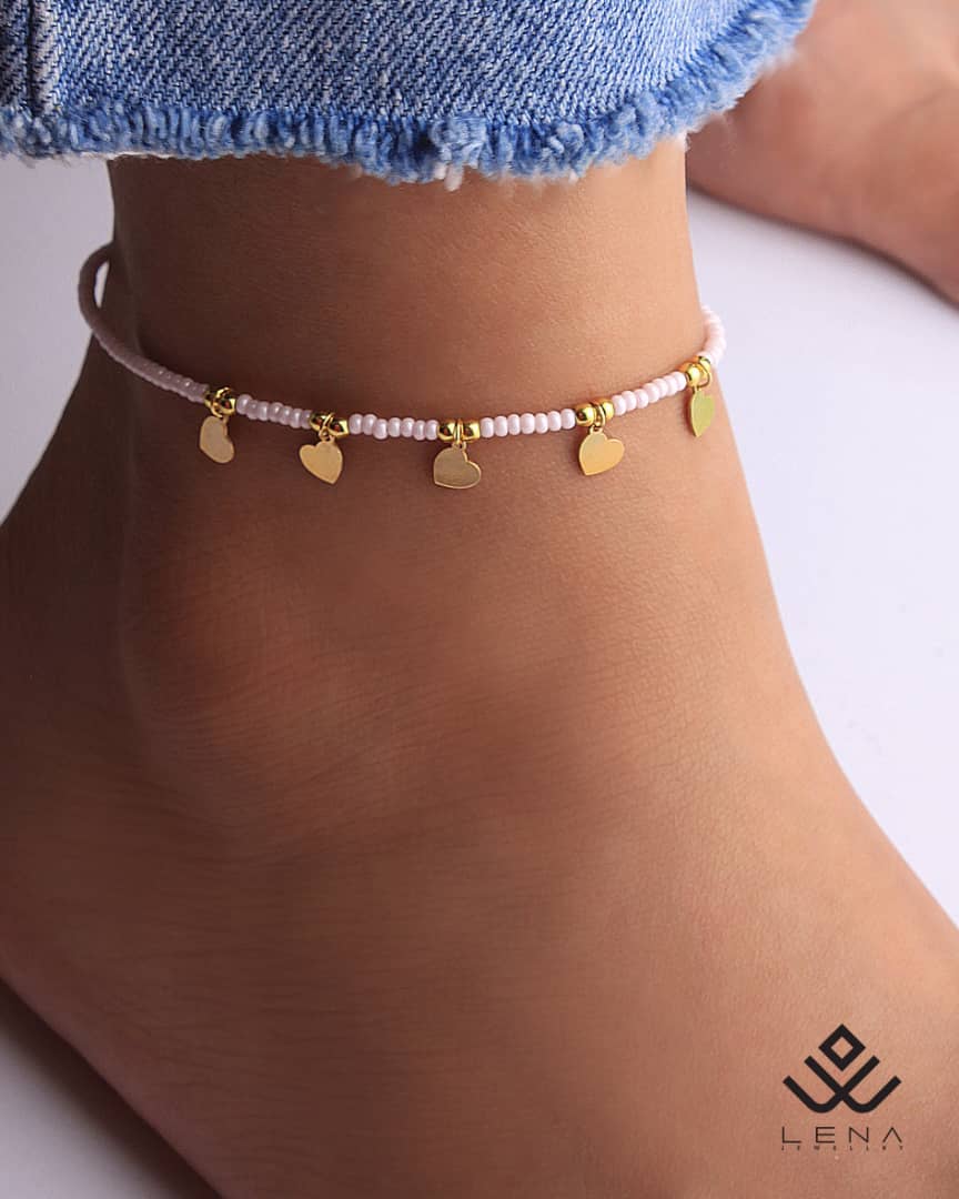 پابند طلا منجوقی با پلاک قلب