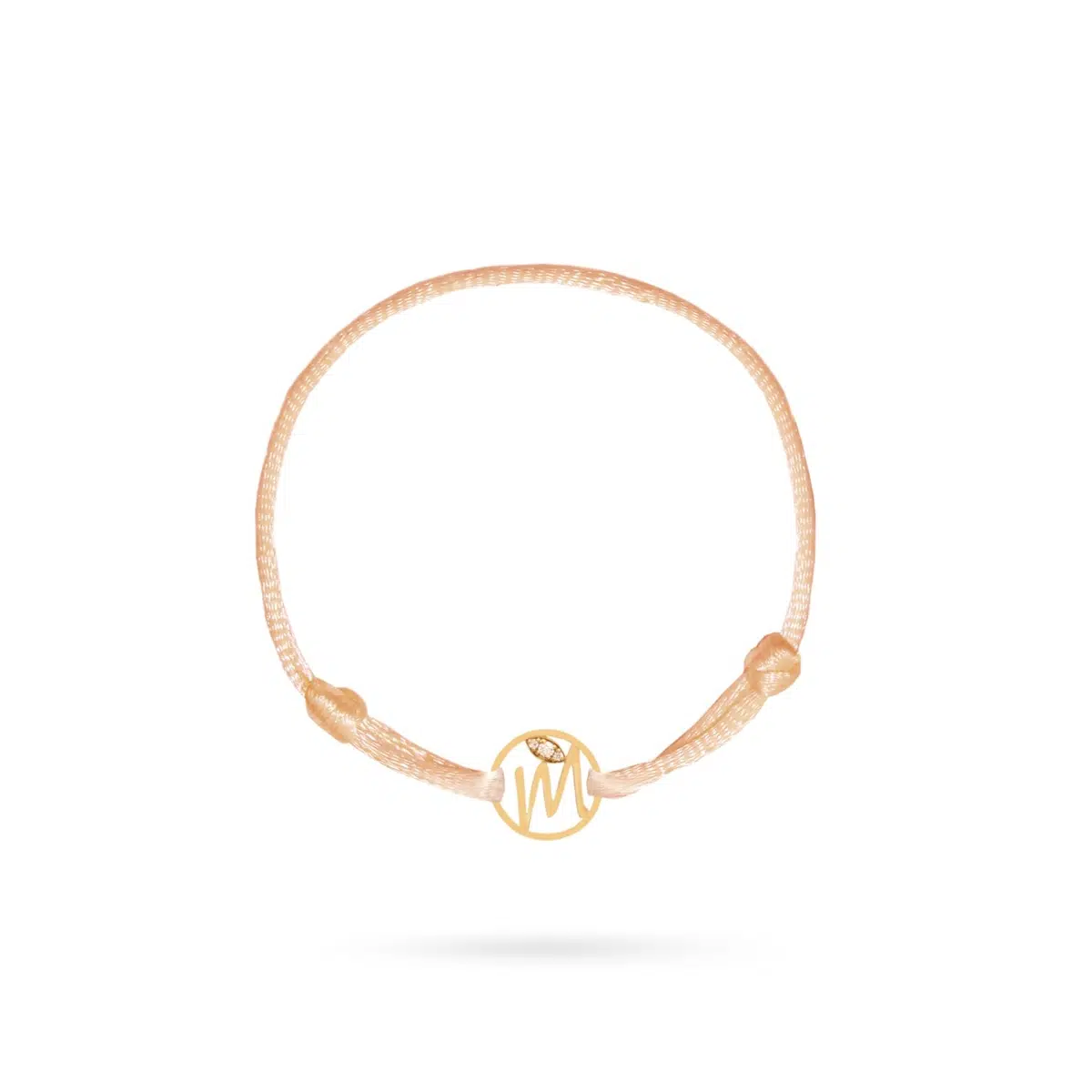 دستبند طلا بند ماکارون حرف M نگیندار