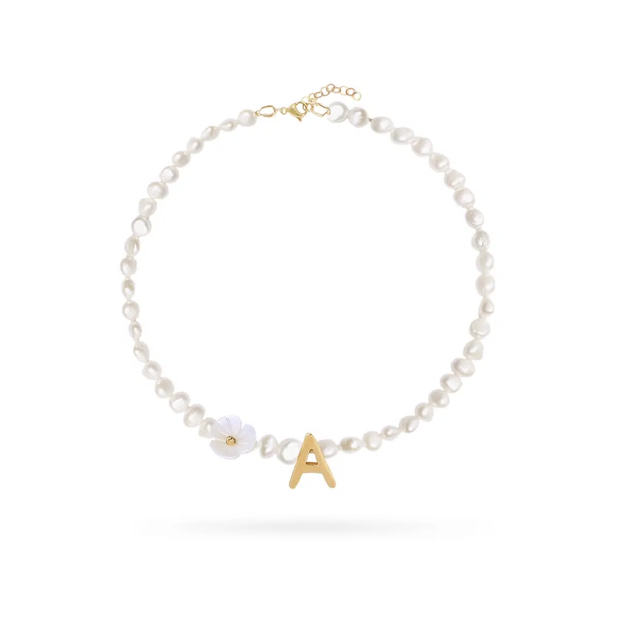 گردنبند طلا و مروارید گل و حرف A