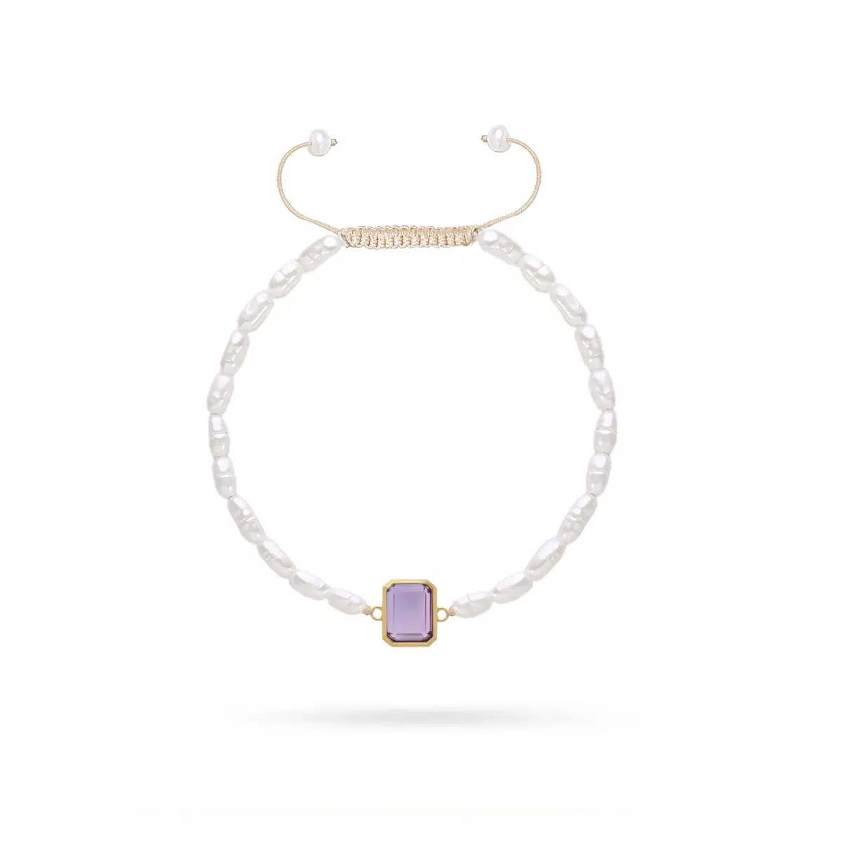 دستبند مروارید با سنگ بنفش