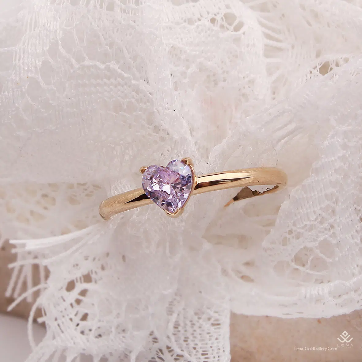 انگشتر طلا سولیتر قلب بنفش