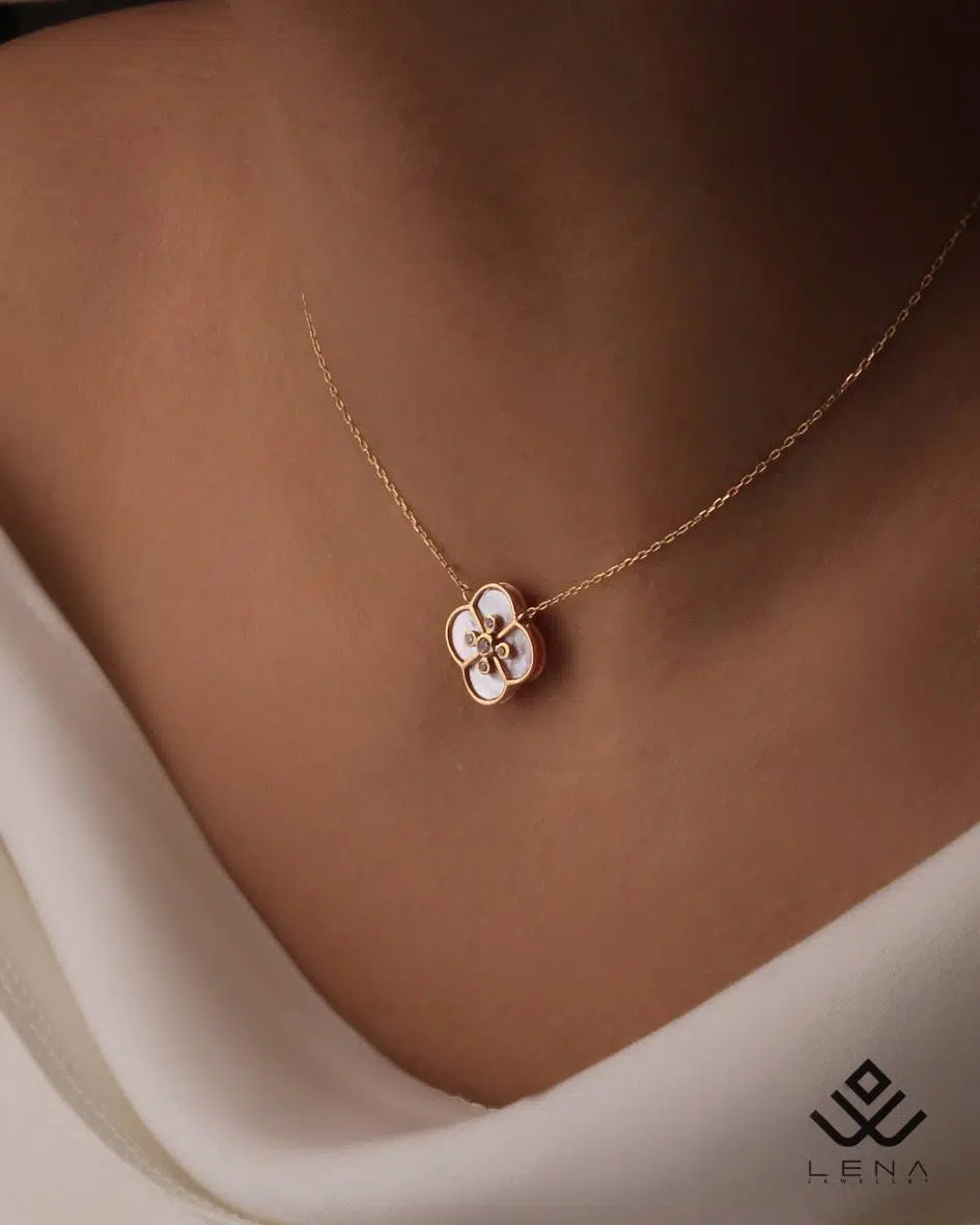 گردنبند طلا و ونکلیف سنگ سفید دور