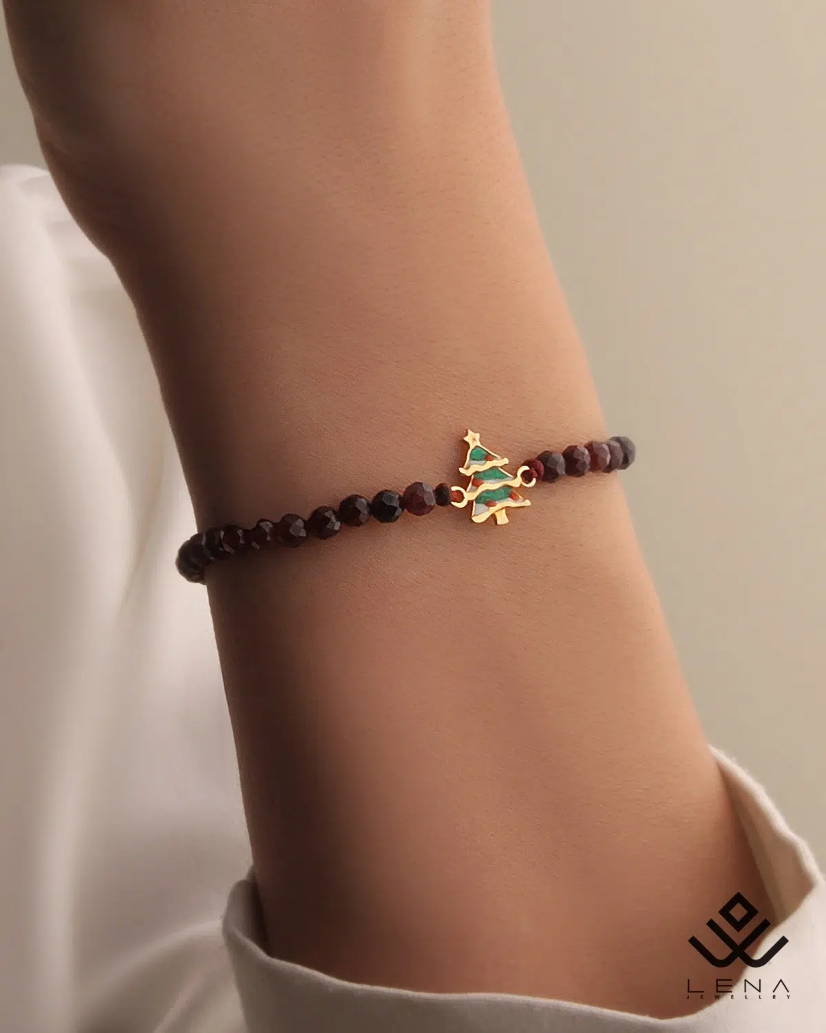 دستبند طلا سنگی با پلاک درخت کریسمس میناکاری