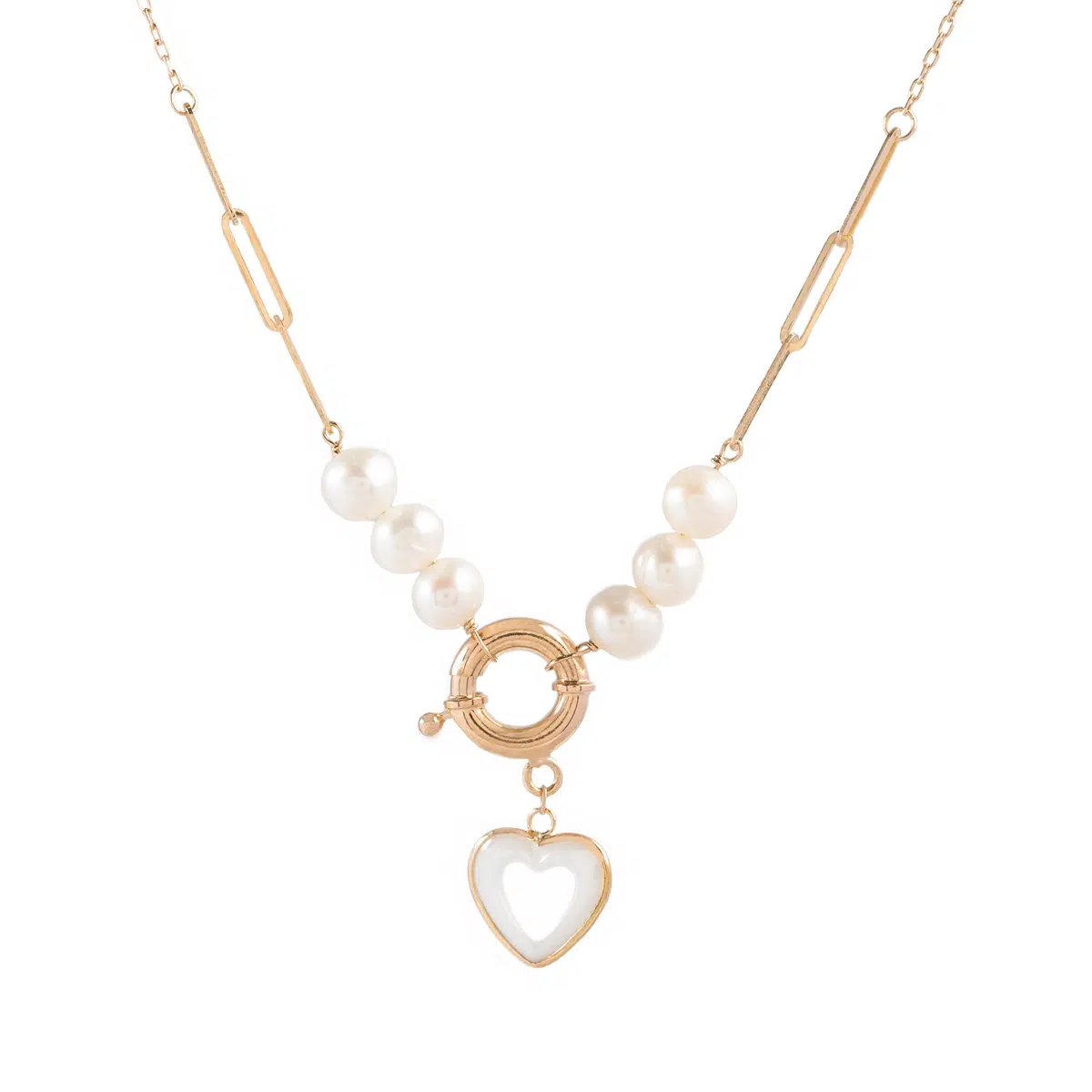 گردنبند طلا هرمس و مروارید با آویز قلب صدفی