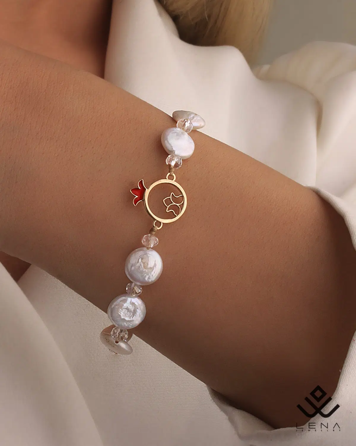 دستبند طلا و مروارید باروک انار