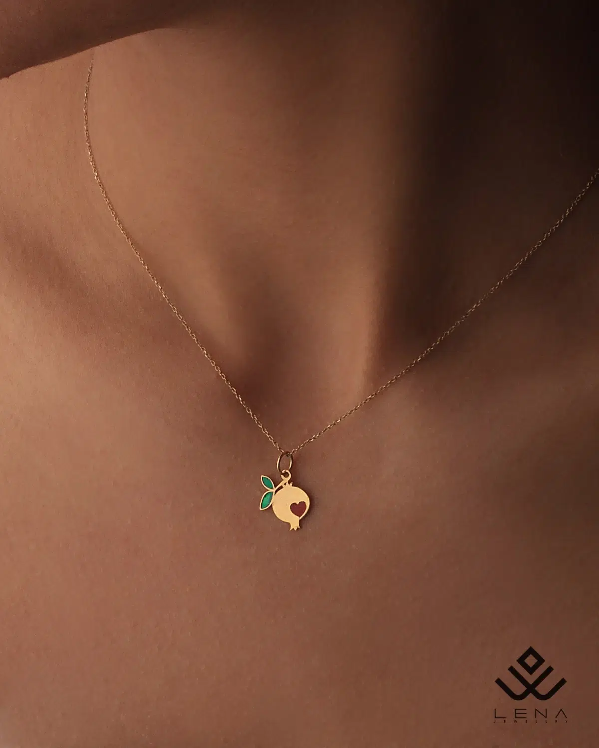 آویز طلا انار قلب میناکاری