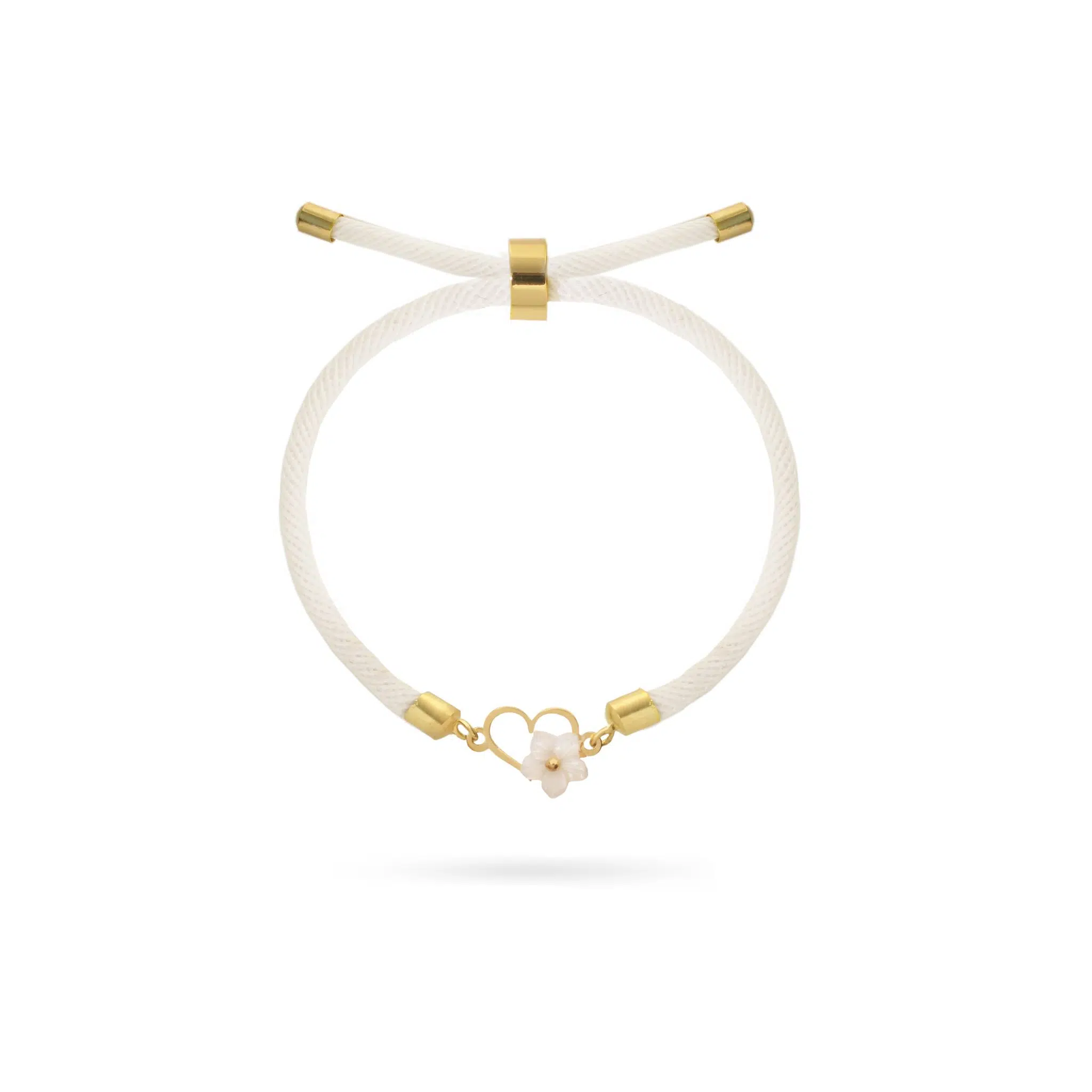 دستبند طلا بنددار قلب با گل صدفی